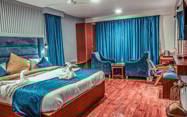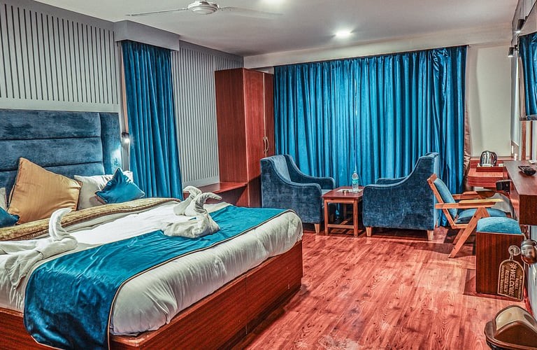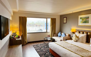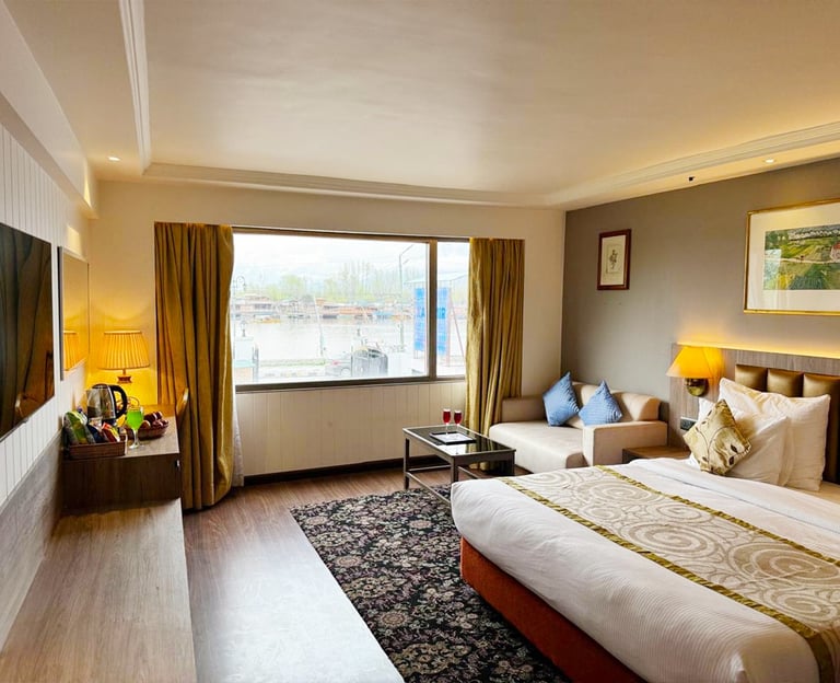 Indulge in our Deluxe Suite, designed for comfort with luxurious amenities and stunning views, perfect for a memorable stay in Kashmir.