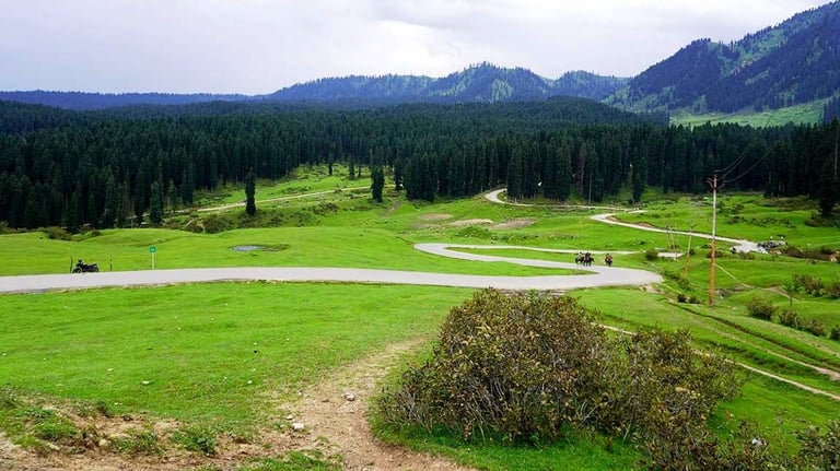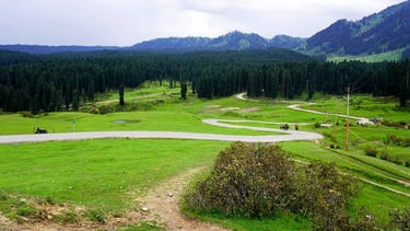 Doodhpathri, meaning "Valley of Milk," is a breathtaking, offbeat hill station and meadow in the Budgam district of Kashmir, about 42 km from Srinagar. At an altitude of nearly 9,000 feet, it's known for its vast, emerald-green meadows, clear Shaliganga river, and stunning views of the Pir Panjal range. While it lacks extensive tourist infrastructure, making it a popular day trip with locals, it offers horse riding, ATV rides, trekking, and a chance to experience the serene, less crowded side of Kashmir.